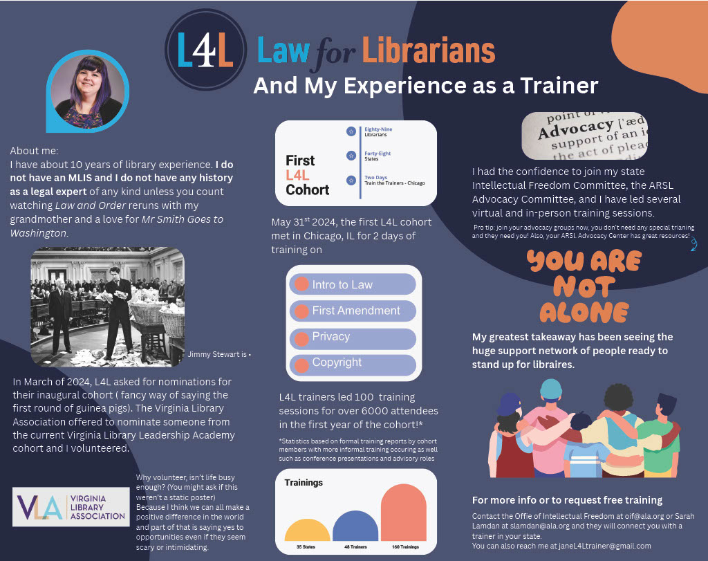 During the 2025 ARSL Conference, Institute participants showcased their work through posters focused on educational librarianship resources, programs, and advocacy, demonstrating the practical impact of their leadership development.